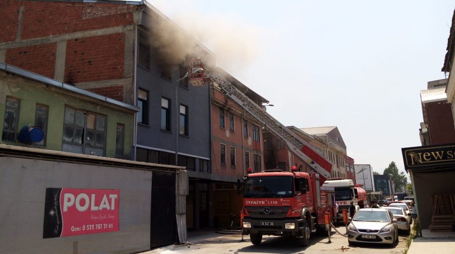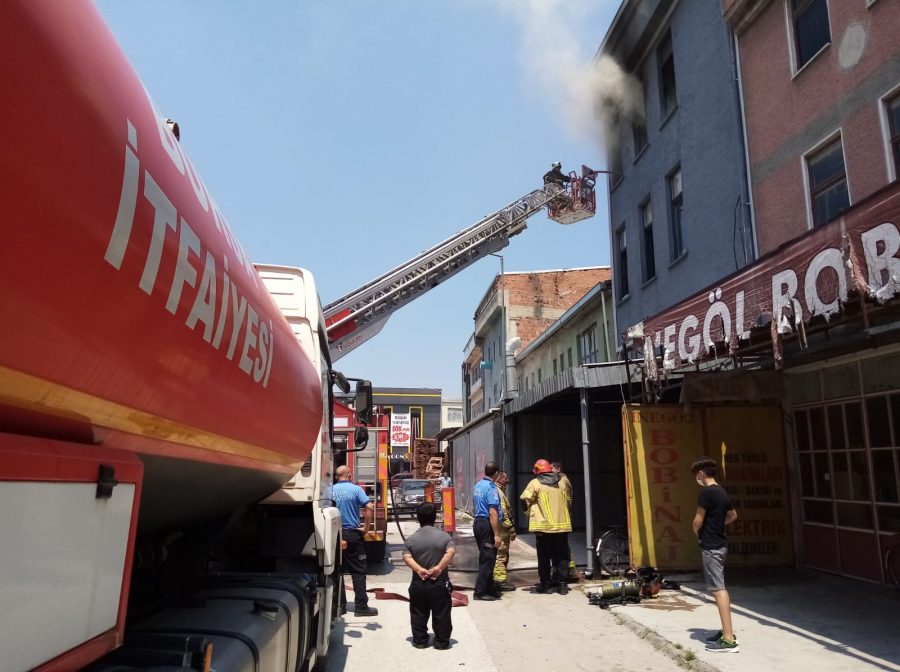 İnegöl ilçesi, Mahmudiye Mahallesi, Orhangazi Caddesi'nde 3 katlı bir binanın mobilya deposu olarak kullanılan en üst katında, saat 13.00 sıralarında yangın çıktı. İşçilerin kaynak yaptığı sırada sıçrayan kıvılcımların sünger parçalarını tutuşturması sonucu çıkan yangın, kısa sürede büyüdü.
