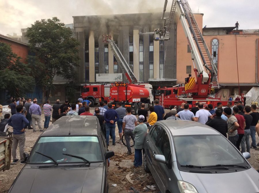 Çalışanlar kendini can havliyle dışarı atarken, olay yerine çok sayıda itfaiye ekibi sevk edildi.