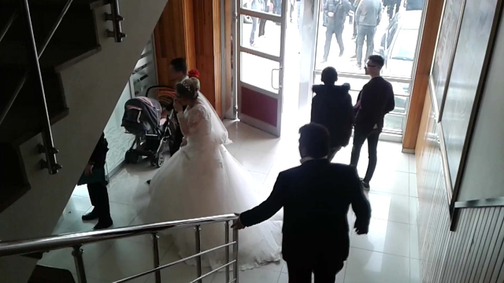 Kavgadan sonra düğün yarım kesilip davetliler dışarı çıkarılırken gelin yaşananlardan ötürü dakikalarca gözyaşı dökerek düğün salonundan ayrıldı.