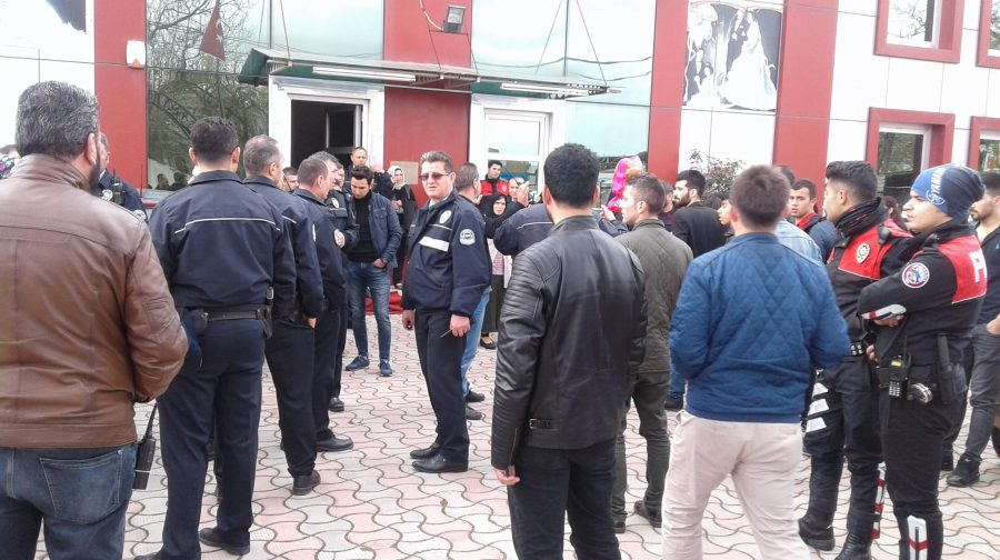 Tartışma kısa sürede kavgaya dönüşünce araya büyükler de girdi. Kavganın büyüdüğünü gören düğün sahipleri olayı polise bildirdi.