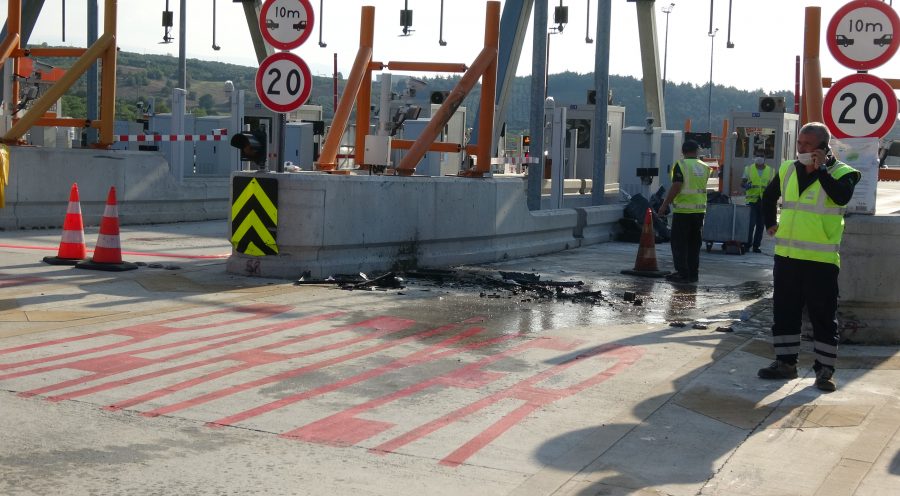 Bu arada kaza anı, gişelerdeki güvenlik kamerasına yansıdı. Görüntülerde hız kesmeden ilerleyen otomobilin, beton bariyere çarparak devrildiği anlar yer alıyor.