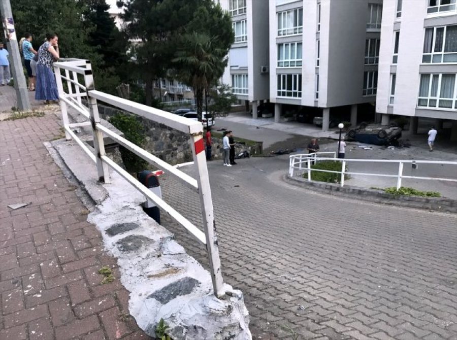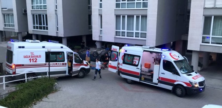 Bursa'da otomobil apartman bahçesine devrildi!