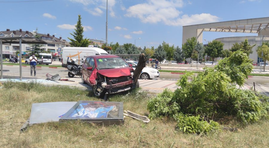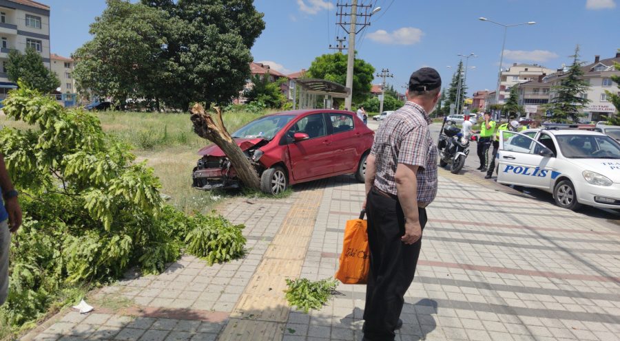 Caddede seyir halinde olan Nagihan Başaran'ın kontrolünden çıkan 16 KHU 56 plakalı otomobil, önce otobüs durağında bekleyen Emine Duran'a ardından da yol kenarındaki ağaca çarparak, durdu.