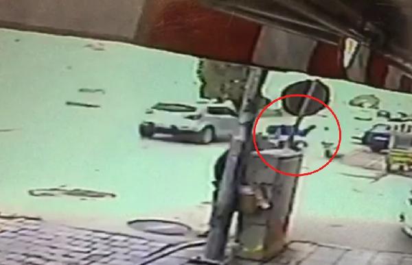 Kaza anı, bir iş yerinin güvenlik kamerasınca anbean kaydedildi. Görüntülere; elektrikli bisiklet sürücüsünün hatalı dönüş yaptığı sırada otomobilin çarptığı ve bisiklet sürücüsünün yere düştüğü anlar yansıdı.