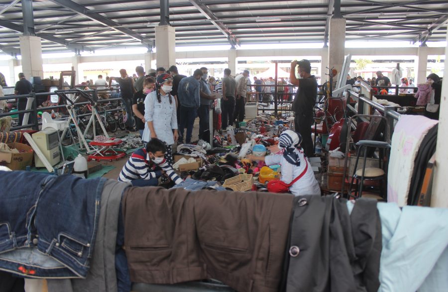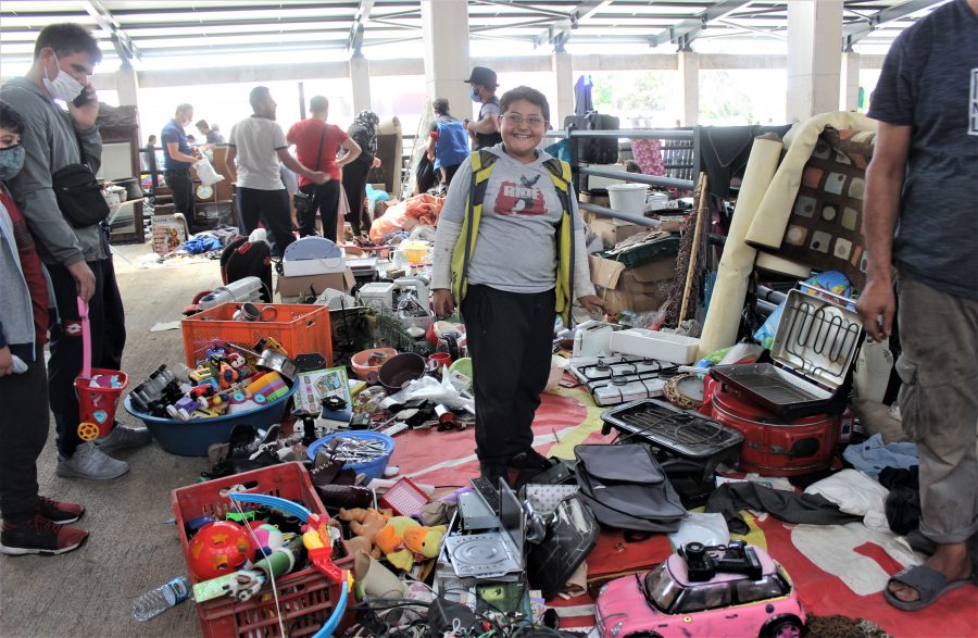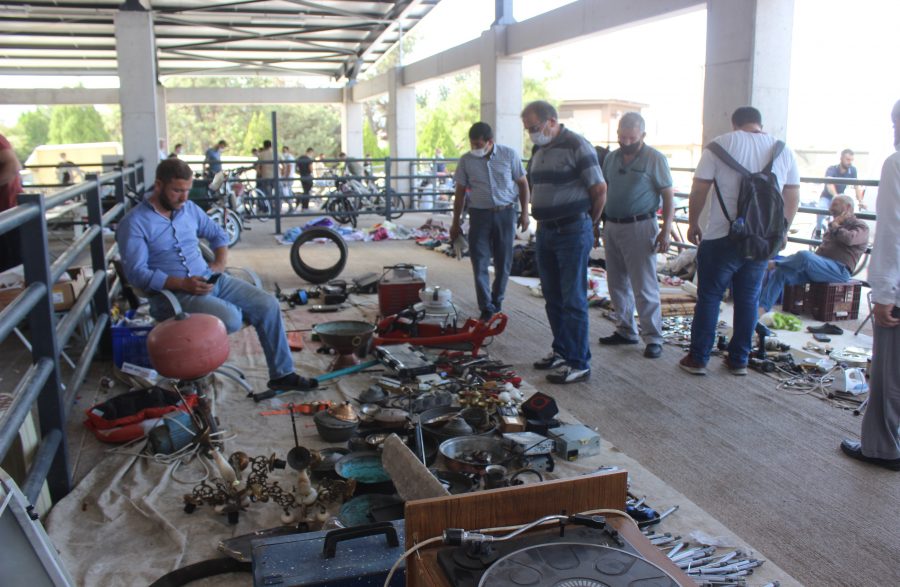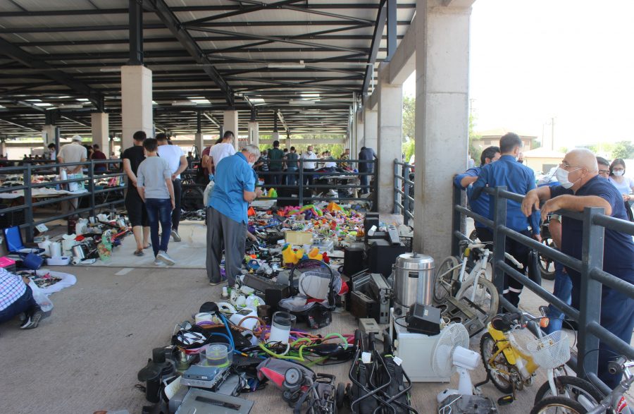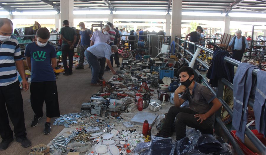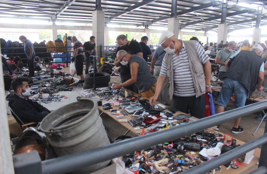 Bursa'da modern pazar yerinde hurda eşyalar satışa sunuluyor.