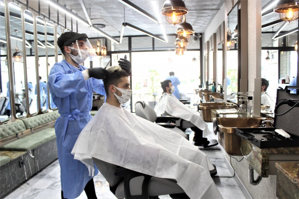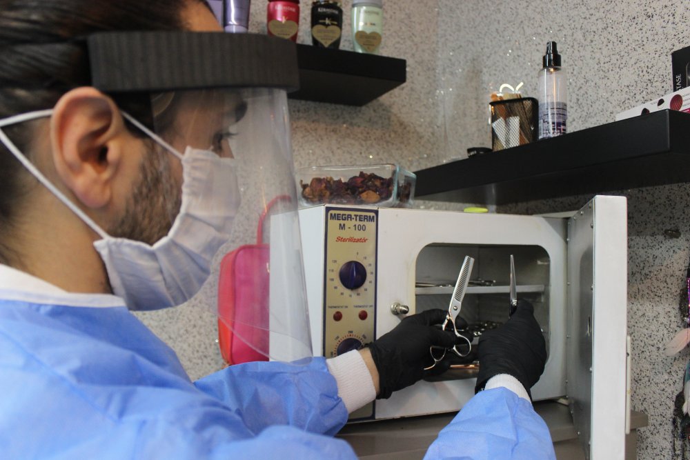 Bursa'da hizmete başlayan bir kuaför ise müşterilerini tıraş edeceği odaları ultraviyole ışınlarla 8 dakika dezenfekte ederek bir sonraki müşterisini tıraşa alıyor. Çalışanlar iki takım tıraş takımı bulundururken, kullandığı tıraş takımı steril özelliği olan dolaba koyarak dezenfekte ediyor. Diğer tıraş takımıyla tıraşa devam ediyor. Her müşteri için tek kullanımlık önlük kullanılırken girişte müşterilerin ateşi ölçülüp elleri dezenfekte ediliyor. Müşteriler ise uzun bir aradan sonra uzayan saç ve sakallarını kestirmek için kuaförlere akın etti.