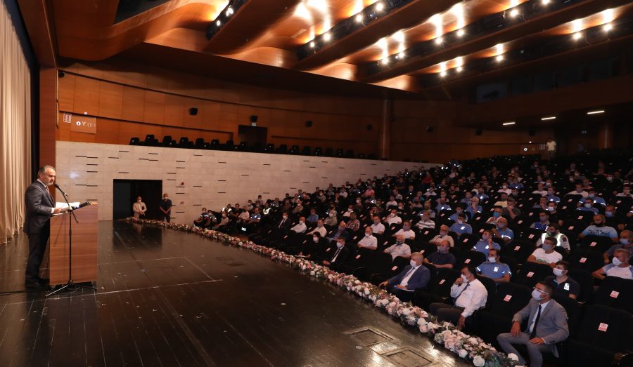 Büyükşehir Belediye Başkanı Alinur Aktaş, Atatürk Kongre Kültür Merkezi'nde BUSKİ bünyesindeki Sayaç Sökme Takma ve Açma Kapama birimlerinin personeliyle buluştu.