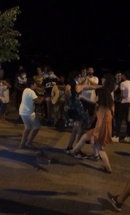 Kalabalığı fırsat bilen çalgıcılar, korona virüs mücadelesini yok sayarak ensturmanlarını çalmış, bölgedeki vatandaşlar da oynayarak çalgıcılara eşlik etmişti.