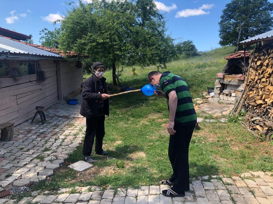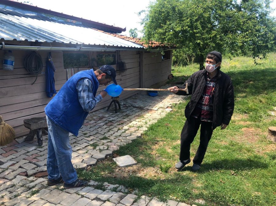 İznik ilçesinin Sarıağıl Mahallesi'nde yaşayan Yılmaz ailesi, bayram sabahı bir araya geldi. Sosyal mesafeye riayet eden aile bireylerinden gençler, büyüklerinin ellerini öpmek yerine korona virüs tedbirlerine uyarak aile büyüklerinin ellerindeki sopalara şişirdikten sonra bağladığı eldivenleri öptü. Gençlerin ve aile büyüklerinin ilginç anları herkesi gülümsetti.