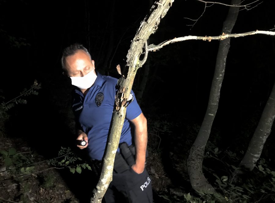Gece karanlığına rağmen ormanlık alanı karış karış arayan ekipler, 3 saat sonunda çalışmalarına ara verdi.