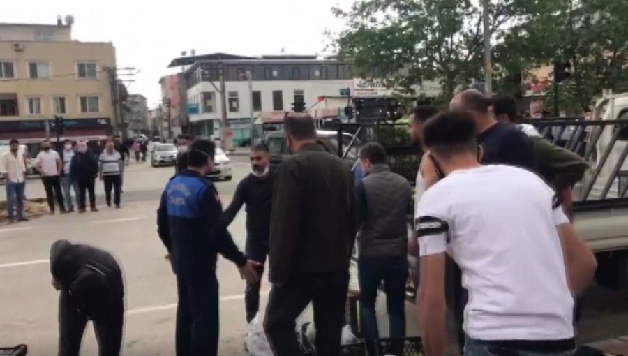 Olay, merkez Osmangazi ilçesi Yunuseli Mahallesi'nde dün akşam saatlerinde meydana geldi. Yunuseli Toki Konutları önünde sokağa çıkma kısıtlamasına rağmen seyyar meyve sebze tezgahı açan seyyar satıcılara Bursa Büyükşehir Belediyesi zabıta ekipleri müdahale etti.