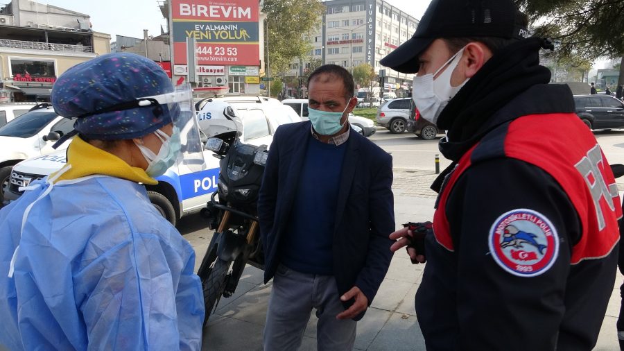 Ekipler, denetim sırasında meydanda yürürken sigara içtiğini gördükleri Hamdi İ.'yi durdurdu. Ceza yazmak için Hamdi İ.'nin kimliğini alan ekipler, eşinin koronavirüs hastası olduğu için karantinada olması gerektiğini tespit etti. Hamdi İ. polis ekiplerine, iş yerine evrak vermek için evden çıktığını söyledi. Hamdi İ., "Ayın 2'sinde eşime pozitif tanı kondu. Biz de ondan sonra karantinaya alındık. Ben ayın 5'inde test yaptırdım ama negatif çıktım. Bugün de pazartesi günü iş başı yapacağım ve iş yerimin istediği evrakları almak için dışarı çıktım. Evrakları alıp eve gidecektim. Karantinanın bitmesine 3 gün var daha" dedi.