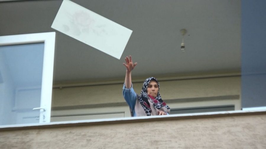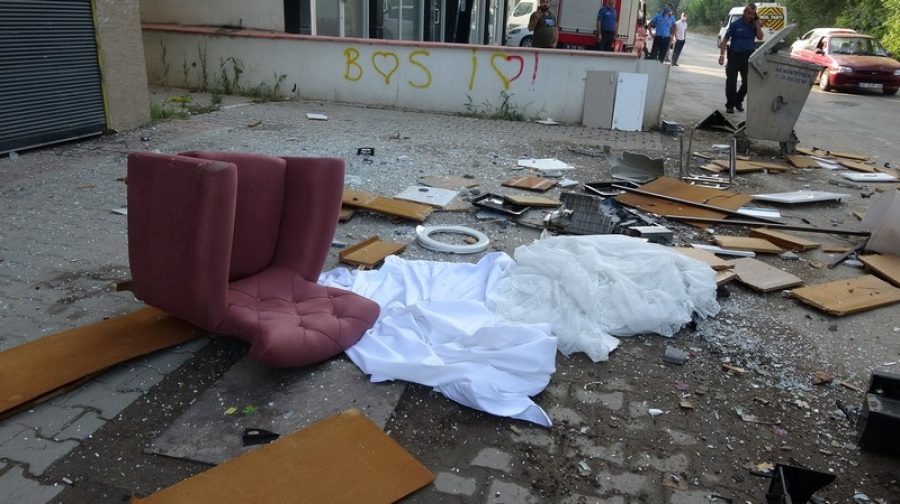 Ardından evinin balkonuna çıkan E.Ç., masa, koltuk, sandalye ve televizyon gibi eşyaları sokağa attı.