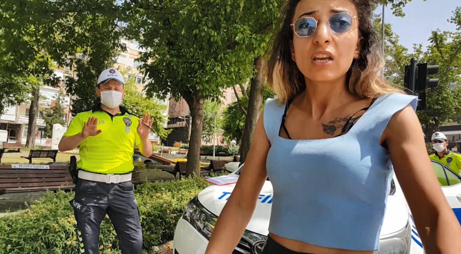 İzin belgesi olmadığı ortaya çıkan Sevgi S., istenilen kimlik ile ehliyeti de 'yanında olmadığı' gerekçesiyle gösteremedi. Sevgi S., bu sırada kendisini görüntüleyen basın mensuplarına saldırarak, kamerayı aldı.