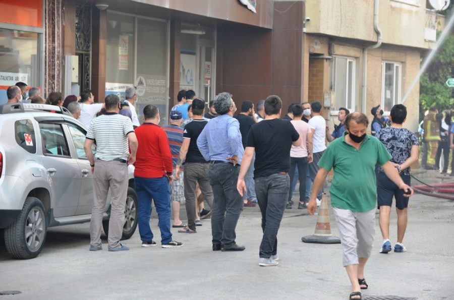 Polis ekipleri çevrede önlem alırken, itfaiye ekipleri de yangına müdahale etti. Bu sırada sokağa dökülen mahalleli, film izler gibi yangını seyretti.