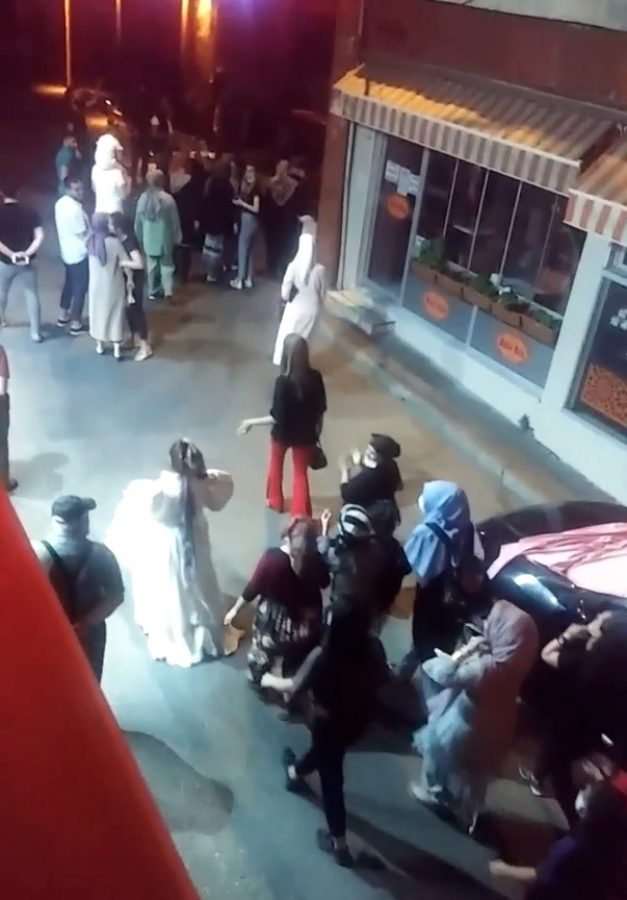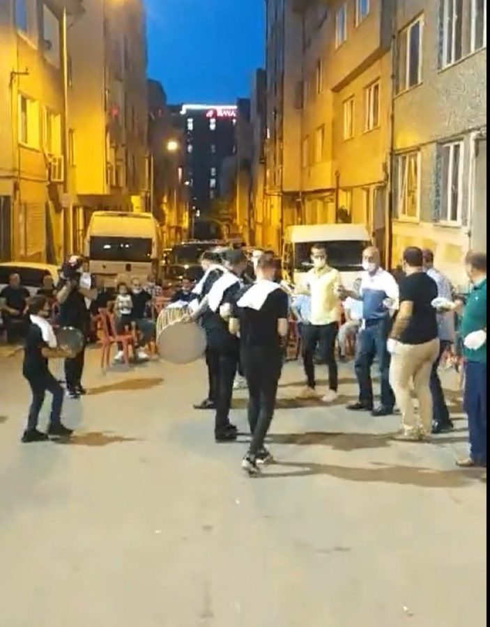 Kentin bir başka tavuk alma eğlencesinde tedbirlere uyulmadı. Gecenin ilerleyen saatlerinde, küçük çocukların da bulunduğu bir grup, sosyal mesafeye dikkat etmeyerek yürüdü. Bazı kişilerinde maske takmadığı görülürken, kısa sürede oluşan kalabalık bölge halkının tepkisine neden oldu.