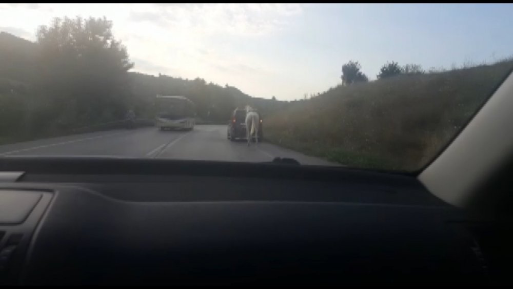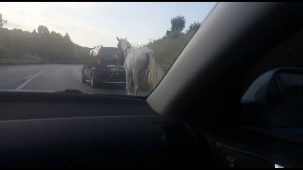 Edinilen bilgiye göre, İnegöl-Oylat yolunda bir sürücü, atı araca iple bağlayıp yola çıktı. Sabah saatlerinde yol üzerinde at ile sürücüyü görenler şaşkınlıklarını gizleyemedi.