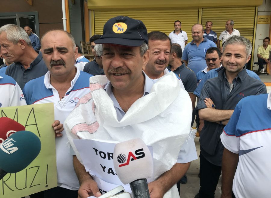 Bursa'da görev yapan postacılar, PTT Başmüdürlüğü önünde çuvallı basın açıklaması yaptı. Türk Haber-Sen Bursa Şube Başkanı Orhan Avcı, "Posta dağıtıcıları olarak büro hizmeti yapan diğer kamu çalışanlarından farklı bir ifa etmekteyiz. Posta dağıtıcıları her türlü hava şartlarında, kışın dondurucu soğuğuna rağmen her gün 20-30 kilogram yükünü gram gram dağıtarak, 18-20 kilometre yol yürüyor. İş yoğunluğu sebebiyle yılbaşı, bayram tatili ve hafta sonu çalışmakta ve normal kamu hizmetinden farklı olarak yılda 50-60 gün fazla mesai yapmaktayız" dedi.