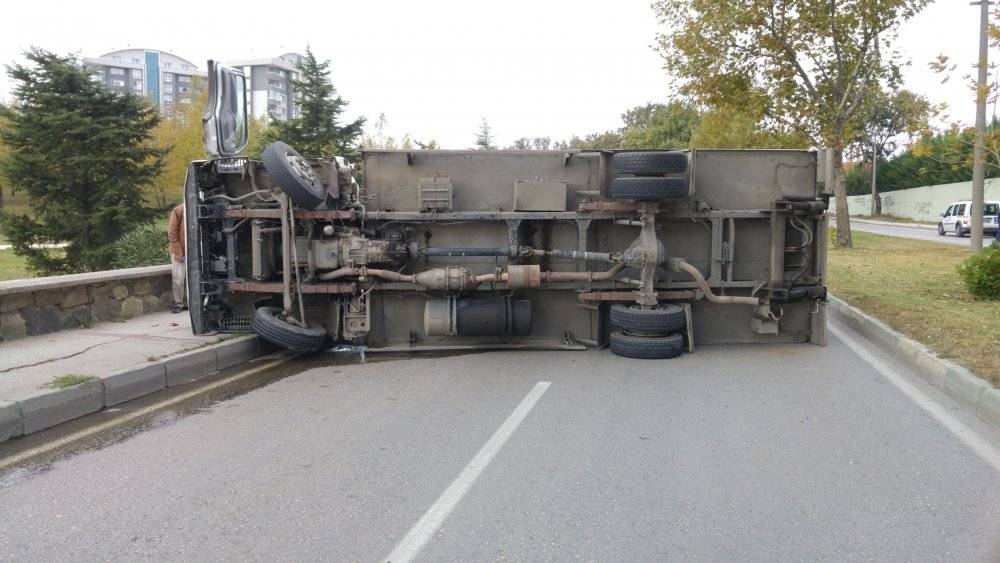 Yaklaşık 20 metre tek tarafı üzerinde sürüklenen araç yola dik şekilde devrilerek iki şeridi de kapattı. Sürücü Çelmi kazayı yara almadan atlattı. Polis ekipleri kazayla ilgili tahkikat başlattı.