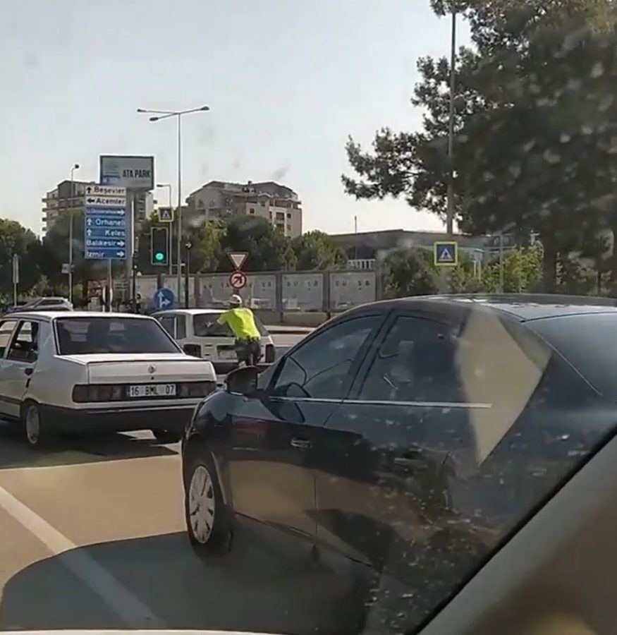 Nilüfer ilçesi İzmir Yolu Caddesi'ndeki kavşaktaki trafik ışıklarında, geçen salı günü, kırmızıda duran otomobil, arıza yaptı.