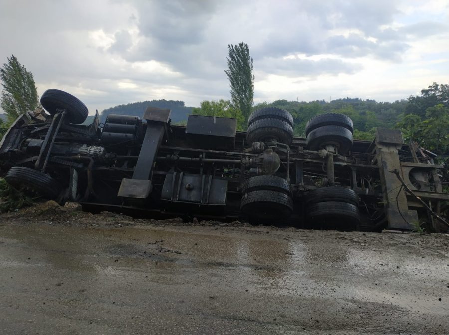 Yan yatan araçta kalan sürücü köylülerin yardımıyla araçtan çıkmayı başardı.