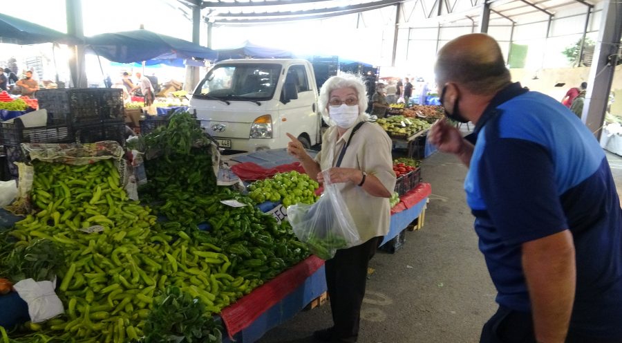 Pazar girişinde yaşanan bir diyalog ise gülüşmelere sebep oldu. Pazara girmek isteyen bir teyzeye 65 yaşında olduğu için pazara alınmayacağı tebliğ edildi. Alınan kararla ilgili bilgi verildi. Yaşlı teyze, "Evde yiyecek yemeğim yok. Benim yaşım 62. Az önce yanlış söyledim" diyerek herkesi güldürdü.