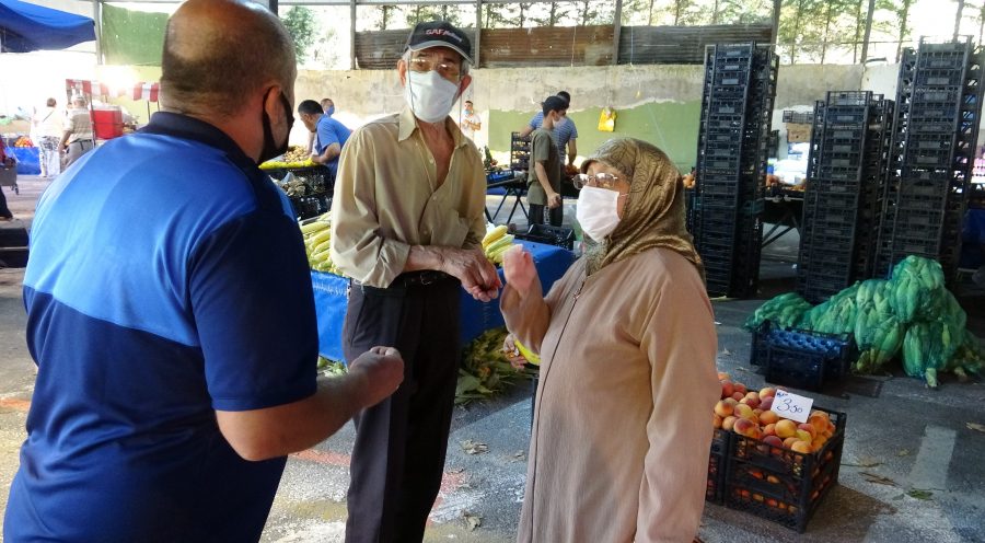Yıldırım Belediyesi Zabıta Müdürlüğü ekipleri, semt pazarlarında tek tek vatandaşlarla ilgilendi. Pazarda olan vatandaşların bir an önce pazarı terk etmeleri istenirken, yaşlıların pazara girişlerine ise izin verilmedi.