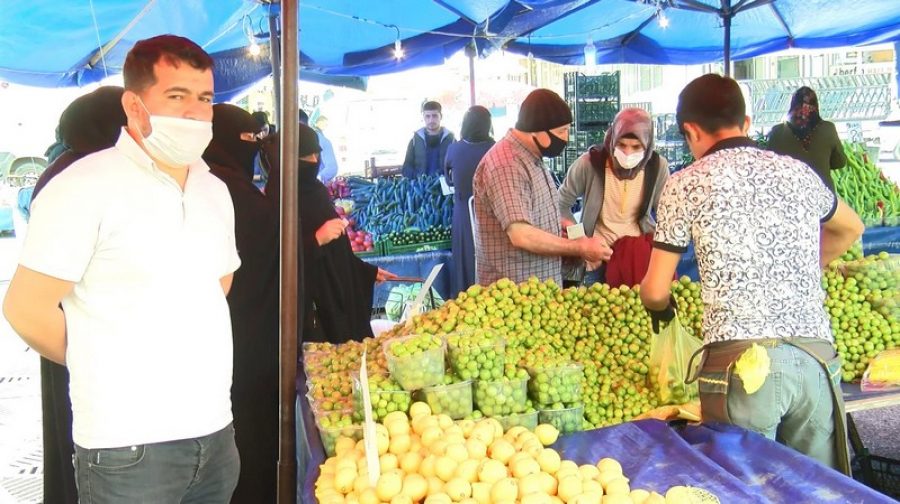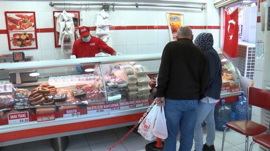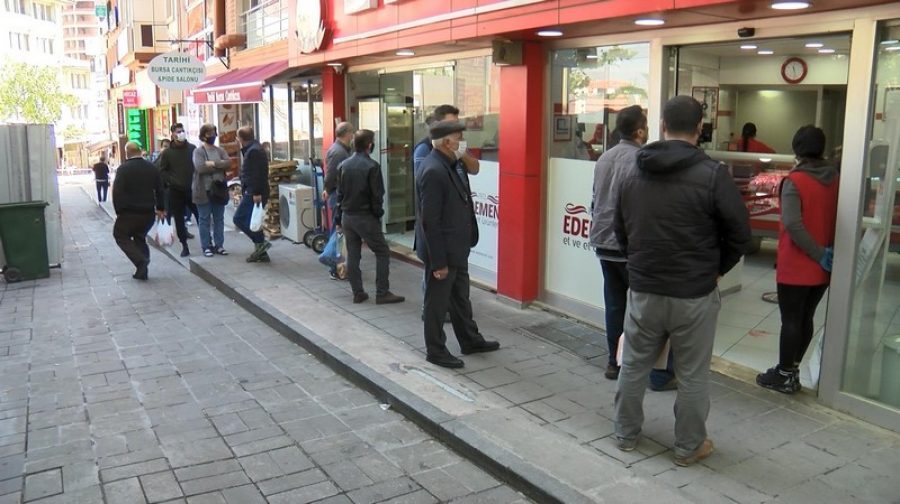 Polis ekiplerinin tüm uyarıların rağmen vatandaşların temel ihtiyaçlarını almak için geldikleri pazarlarda sosyal mesafeye uymadığı görüldü. Kasap önünde de yoğunluk oluşturan vatandaşlar saatlerce sıra bekledi.