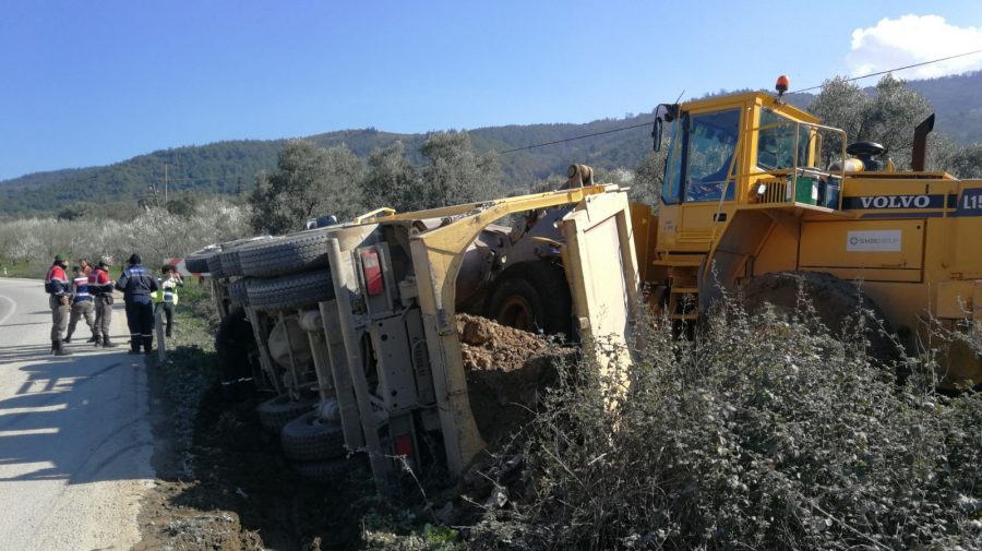 İznik-Adapazarı kara yolunun genişletme çalışmasında hafriyat kamyonu kaza yaptı.