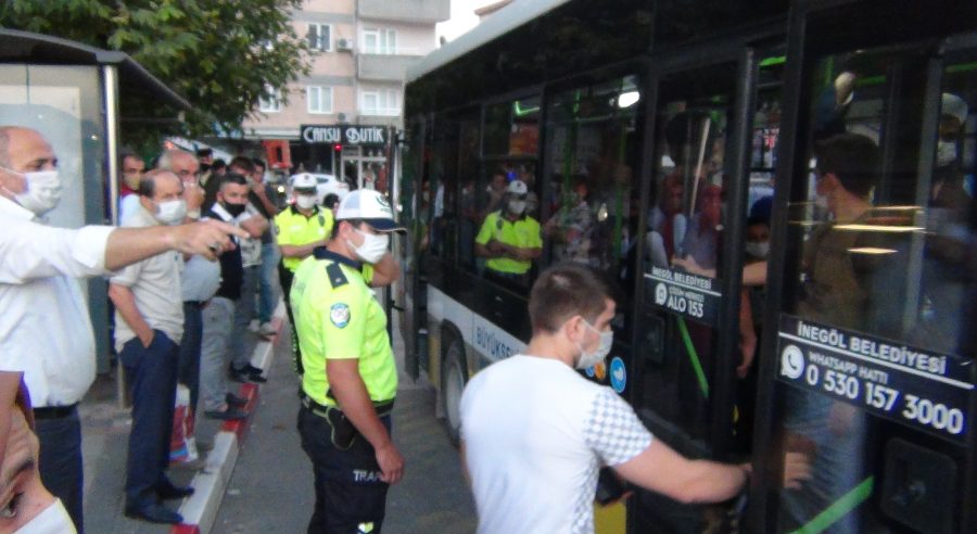 Bursa'nın İnegöl ilçesinde polis, toplu taşıma araçlarında denetim yaptı. Korona tedbirleri kapsamında 25 kişi oturarak ve 12 kişi ayakta olmak üzere 37 kişi taşıyabilecek olan halk otobüslerinde ayakta bulunan yolcuları sayan polis tutanak tutup gönderirken, bu kez de otobüs duraklarında yığılmalar yaşandı. Vatandaşlar, otobüsçü esnafından sefer sayılarını artırmasını istiyor.