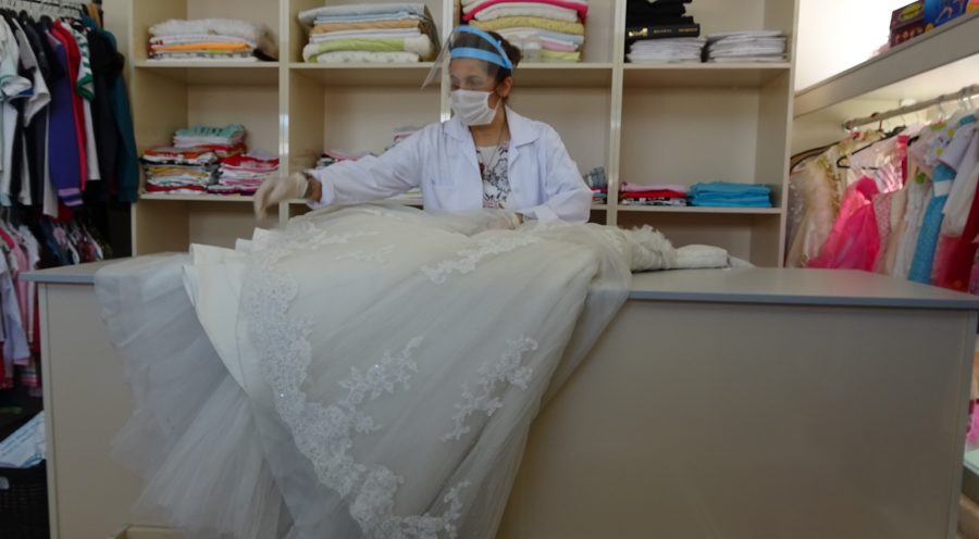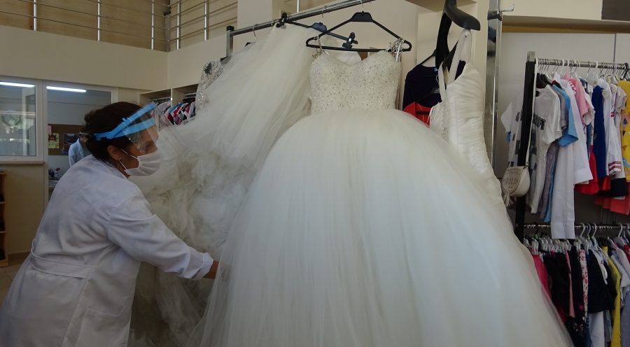 Nilüfer Belediyesine bağlı İhsaniye Mahallesi'ndeki Giymiyorsanız Giydirin Atölyesi ve Görükle Mahallesi'ndeki Giymiyorsanız Giydirin Kampüs, ihtiyaç sahibi ailelerin yükünü hafifletiyor. Bursalı vatandaşların getirdikleri abiyeden elbiseye, ayakkabıdan oyuncağa, pantolondan gömleğe kadar birçok ürün temizlenip ütülendikten sonra askılara asılarak ihtiyaç sahiplerini bekliyor. Bir alışveriş merkezini andıran mağazadaki gelinlikler ise göze çarpıyor. Vatandaşların sandıklarda naftalinleyip sakladığı gelinlikler, hayalini kurup alamadığı ihtiyaç sahibi kızların ve ailelerinin yüzünü güldürüyor. Korona virüs tedbirleri kapsamında getirilen düğün kısıtlamasının 1 Temmuz'da kaldırılması, mağazadaki gelinliklerin de hızlı tükenmesine sebep oldu.