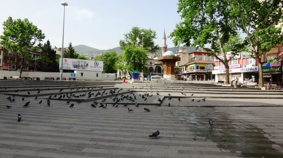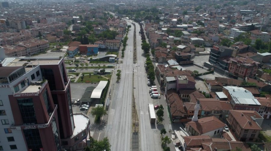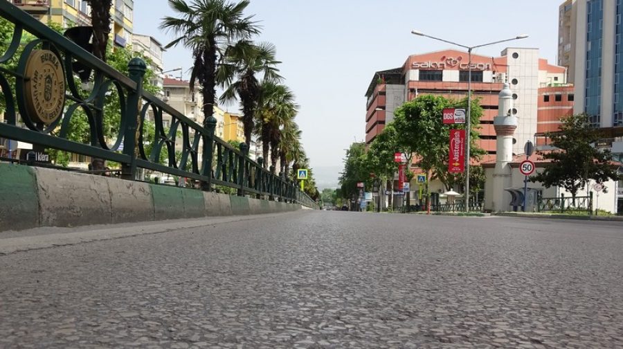İçişleri Bakanlığı'nca koronavirüs tedbirleri kapsamında 14 büyükşehir ve Zonguldak'ta 4 günlük sokağa çıkma yasağı ilan edildi. Kısıtlamanın ilk gününde, Bursa'da cadde ve meydanlar boş kaldı.