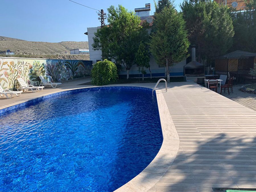 Yüzme havuzunun da yer aldığı binanın her köşesine kamera konulduğu ve suç örgütünün silahlı üyeleri tarafından sıkı şekilde korunduğu belirlendi.