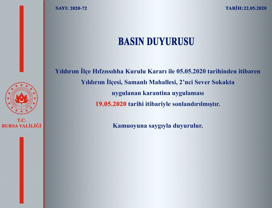 "Yıldırım İlçe Hıfzıssıhha Kurulu Kararı ile 05.05.2020 tarihinden itibaren
