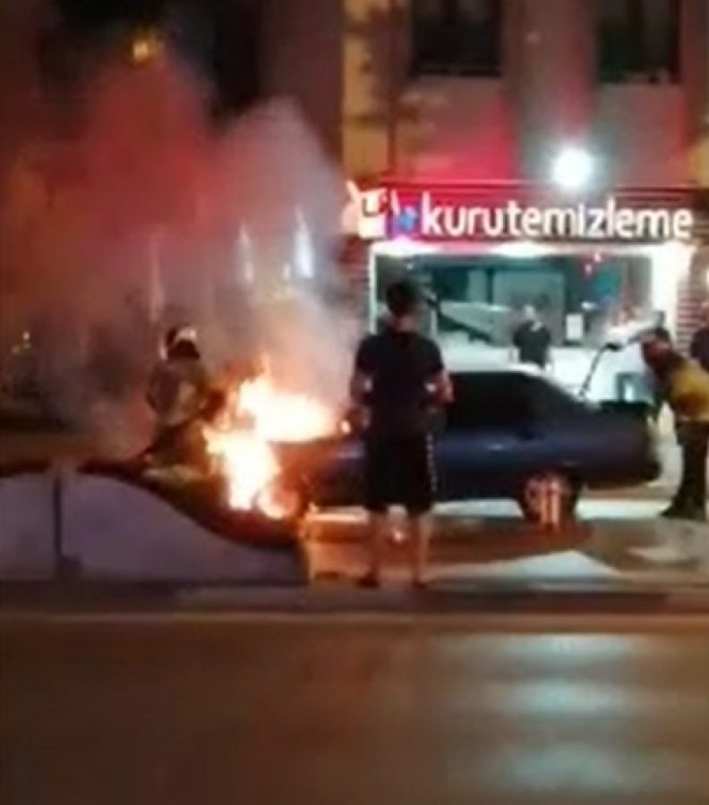 Alevler kısa sürede otomobilin her tarafını sardı.