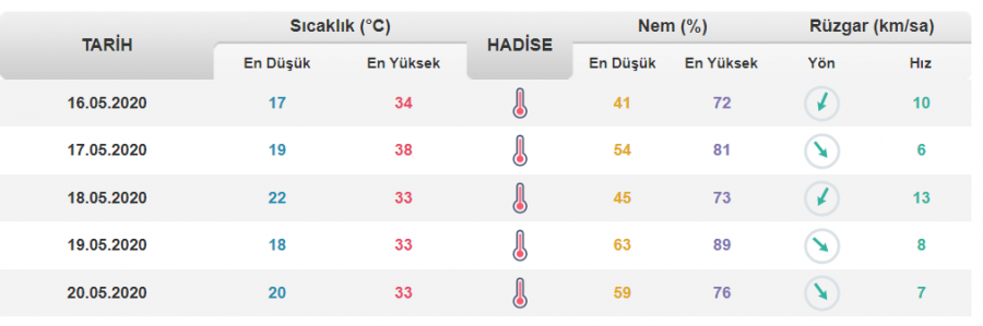 Meteoroloji Genel Müdürlüğü 15 Mayıs ile 19 Mayıs tarihleri arasında sıcaklıkların 9-13 derece yükseleceği tahmininde bulunarak turuncu uyarıda bulundu.