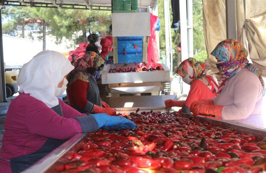 Bursa'nın İnegöl, Yenişehir, Mustafakemalpaşa ve Karacabey ilçeleri ile Konya'nın Akşehir ilçesinde yetiştirilen yıllık ortalama 3 bin ton domates ile 2 bin ton acı biber, kırsal Kulaca Mahallesi'nde kurulan tesiste salçaya dönüştürülüyor.