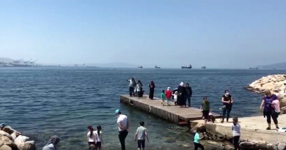 Yanlarında anne yada babaları ile deniz kenarına gelen küçük çocuklar ayakkabılarını çıkartarak denize girip suyla oynadılar. Bazı çocuklarda ahşap iskeleden denizi seyrettiler.