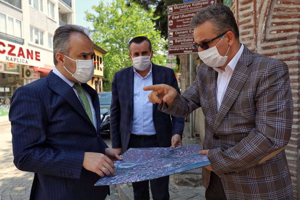 Bursa Büyükşehir Belediye Başkanı Alinur Aktaş, beraberindeki Kocanaip Mahallesi Muhtarı Yusuf Şirin ile birlikte bölgede devam eden çalışmaları yerinde inceledi. Bir taraftan korona virüsle mücadele ederken, diğer taraftan da kent merkezindeki yaya ve araç trafiğindeki azalmayla birlikte yol ve kaldırım düzenleme çalışmalarına hız verdiklerini belirten Başkan Aktaş, “Bursa’mızı adeta şantiyeye çevirdik. Kent merkezinin yanında tüm ilçelerimizde yoğun bir alt yapı, asfalt ve tretuvar çalışması var. Bursa’nın kalbi mesafesindeki Muradiye bölgesindeki çalışmalar Kocanaip, Yahşibey, Hamzabey ve Muradiye Mahallelerini kapsıyor. Yıllardır girilmeyi bekleyen bir bölgeydi ve mahalle muhtarlarımız da her toplantıda sık sık bu konuyu dile getiriyordu. İnşallah bayrama kadar tüm asfalt çalışmalarını, kazı, dolgu ve tretuvar uygulamalarını tamamlamış olacağız. Beraberinde özellikle Muradiye Külliyesi’ne gelen otobüslerin parkıyla alakalı sorunu da halledecek düzenlemeler yapacağız. Bir miktar mahalle halkımıza sıkıntı verdik ancak sabırlarından dolayı hepsine teşekkür ediyorum” dedi.