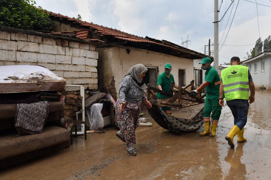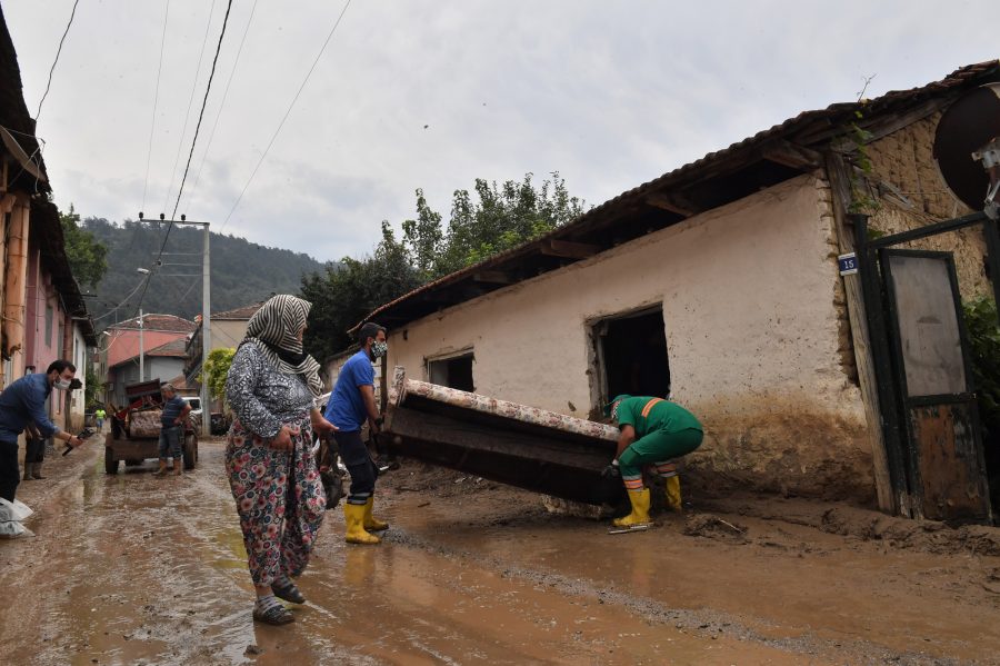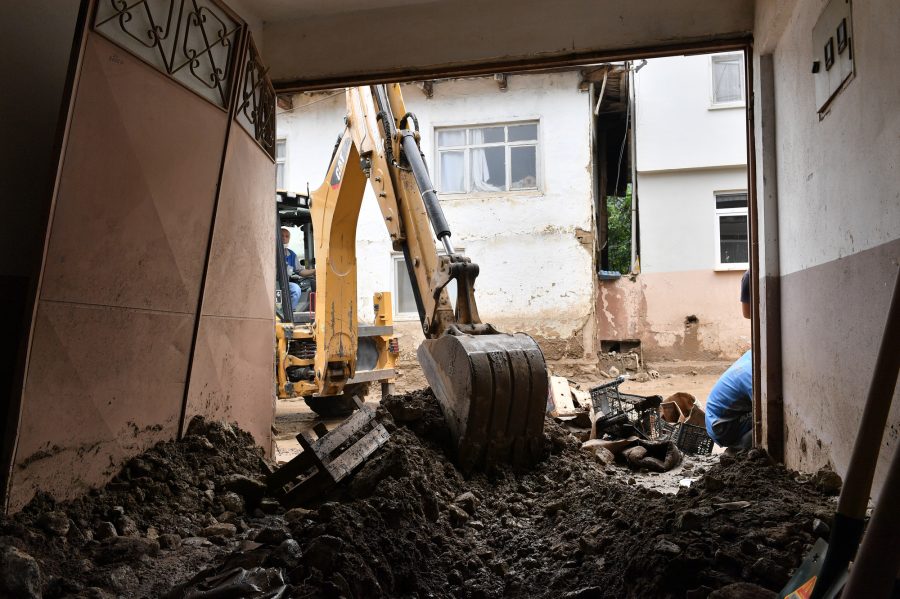 Sel sularının dolduğu evlerde kullanılamaz hale gelen eşyaları tek tek dışarı çıkartan ekipler, daha sonra evlerin içerisine dolan suyu boşaltmak adına ellerinden gelen gayreti gösterdi.