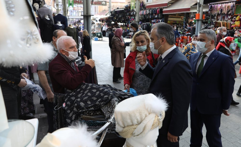 Korona virüs tedbirleri kapsamında Mart ayı sonlarında dükkanlarını kapatan Bursa tarihi çarşı ve hanlar bölgesi esnafı, yeni sosyal hayat kuralları kapsamında Bursalılara hizmet vermeye başladı. Bursa Büyükşehir Belediye Başkanı Alinur Aktaş da çarşı esnafını ziyaret ederek hayırlı ve bol kazançlar diledi.