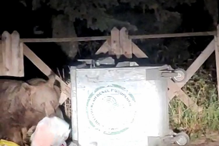 Çöp kutularını karıştıran ayı bir süre sonra gözden kaybolarak tekrar ormana döndü.