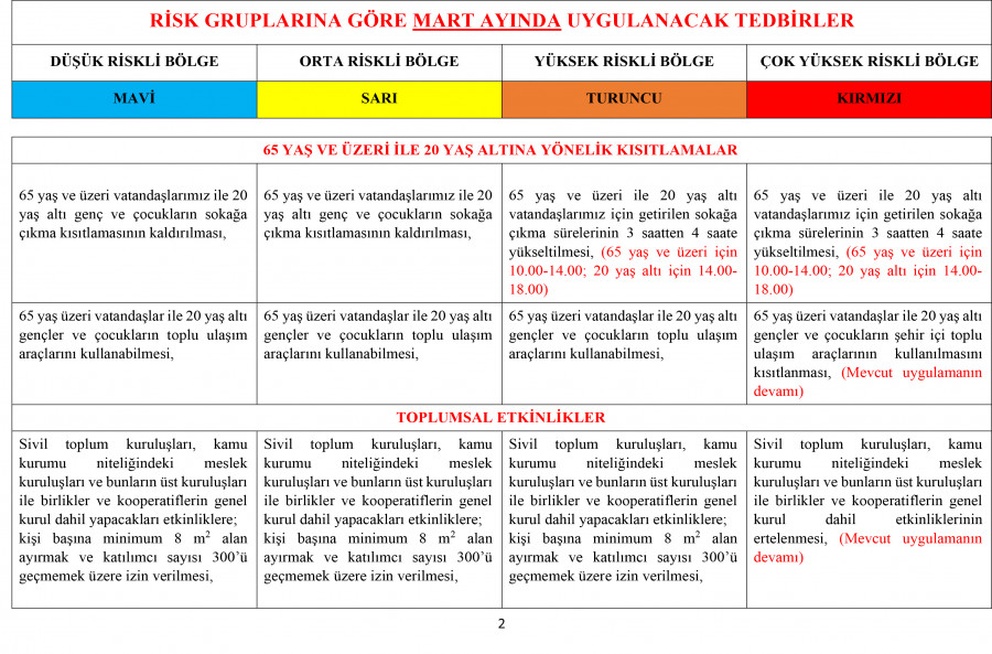 2.Yeni bir karar alınıncaya kadar İlimiz orta risk grubunda değerlendirilmiştir.