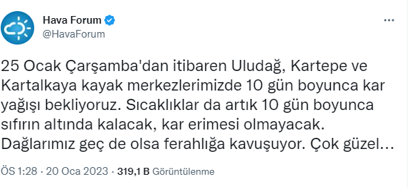 Yağış sıkıntısı yaşayan Bursa için sevindiren bir haber geldi. Hava Forum 25 Ocak'tan itibaren Bursa'da kar yağışının etkili olacağını duyurdu.