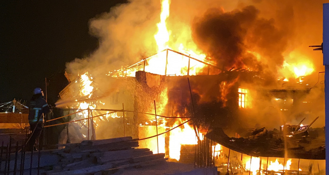 Bursa'da bir antikacı dükkanında çıkan yangına itfaiye ekipleri güçlükle müdahale ediyor. 2 katlı tarihi binayı tamamen saran alevler geceyi aydınlattı. Ahşap binanın yan duvarları bir süre önce yandaki inşaat sebebiyle yıkılmıştı.