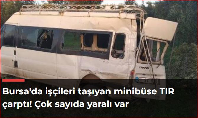 Bursa'nın Orhangazi ilçesinde zeytin toplamaya giden işçileri taşıyan bir minibüs tarlaya dönüş yapmak istediği sırada arkadan gelen bir tır çarptı. Kazada 1 kişi hayatını kaybederken, 1'i ağır olmak üzere 9 kişi yaralandı.