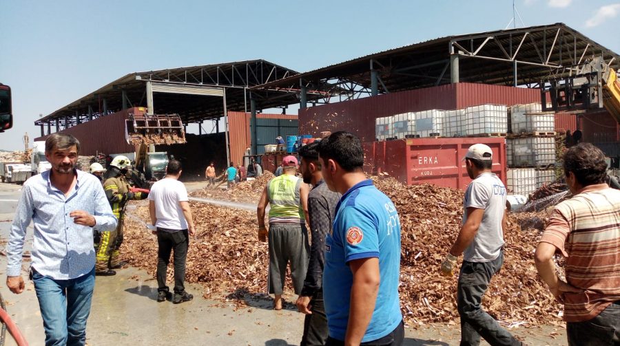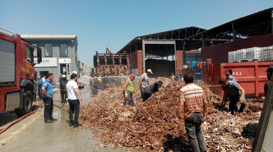 Ekiplerin kısa sürede söndürdüğü yangında, sahada bulunan geri dönüşebilir atıklar kullanılamaz hale geldi.