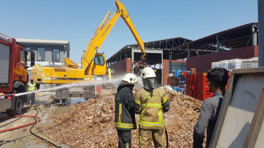 Bursa-Ankara kara yolunda faaliyet gösteren fabrikanın atık sahasında henüz belirlenemeyen nedenle yangın çıktı.