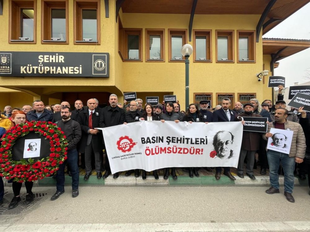 Bursa’da Setbaşı’nda Çağdaş Gazeteciler Derneği öncülüğünde bir araya gelen basın emekçileri, ölümünün 30’uncu yılında Uğur Mumcu’yu anmak üzere yürüyüş düzenledi. Yürüyüşte basın emekçileri tarafından “Basın şehitleri ölümsüzdür” pankartı taşındı.