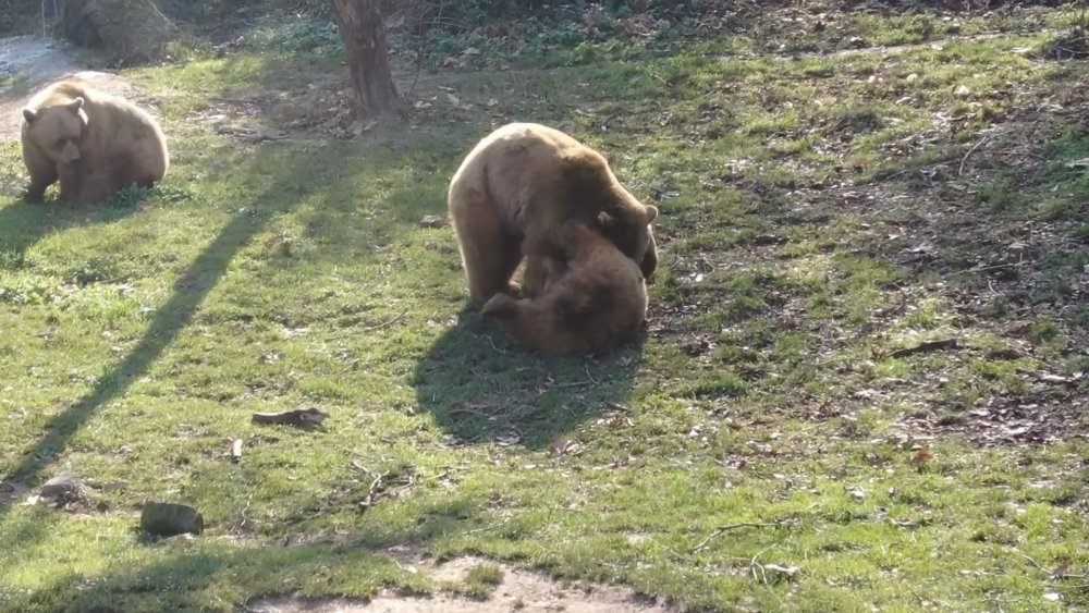 302 dekar ormanlık arazi içerisinde bulunan 72 ayı, Ocak sonuna rağmen; güneşli ve ılık havada ne yapacağını şaşırdı. Bakıcıları tarafından iyi bakılmasıyla keyifleri yerinde olan ayılardan kimi ağaç altında şekerleme yaparken, kimi ise kendi dengi ile güreşe tutundu. Dron ile kayda alınan o anlar, renkli görüntülere sahne oldu.